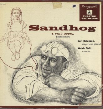 Perhaps the most unusual sleeve commissioned from White was the one he produced for Sandhog, a folk opera devised and executed by Earl Robinson, singer and pianist, and Waldo Salt, narrator. Miscellany notes by I S Horowitz, in the Billboard magazine of February 26, 1955, noted that, “Vanguard Records will soon cut its first L.P. in a new series of show albums. The initial set will be a “special composers’ performance” of “Sandhog,” with Earl Robinson and Waldo Salt featured. The work was recently introduced in New York.” [I S Horowitz, “Liner Notes”, Billboard magazine, February 26, 1955: 38.] A Sandhog was the informal term traditionally given to miners, and those construction workers toiling underground on excavation projects in cities such as New York. Sand was the brainchild of Robinson and Salt. Both were blacklisted (on account of their apparent or perceived left-leaning sympathies) during the McCarthy era, during which time hundreds of Americans, many of whom were artists, writers or otherwise involved in the creative industries, were accused of being communists or communist sympathizers and became the focus of aggressive investigations and questioning before government or private industry panels, committees and agencies. It was as a consequence of this targeting that figures such as Salt and Robinson came to be blacklisted. [Charles White’s own left-leaning impulses and his art work that reflected these impulses were chronicled in Mary Helen Washington’s The Other Blacklist: The African American Literary and Cultural Left of the 1950s [Columbia University Press, 2014]. Artists on the Left: American Artists and the Communist Movement, 1926-1956, by Andrew Hemingway [Yale University Press, 2002] also documents the left-leaning aspects of White’s practice.]